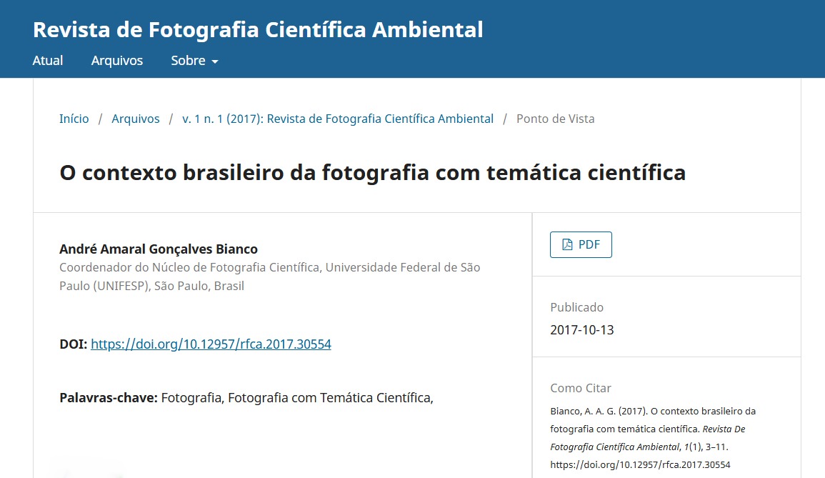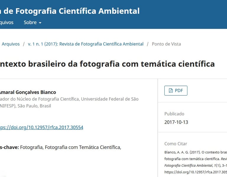 Artigo publicado na Revista de Fotografia Científica Ambiental